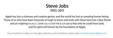 腾讯科技讯(明轩)北京时间10月6日消息,据国外媒体报道,PC产业的先驱、改变了世人对科技看法的苹果董事会主席、联合创始人史蒂夫·乔布斯(Steven P. Jobs)周三逝世,享年56岁。